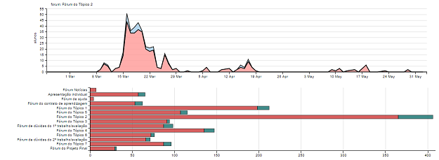 A selecção de um fórum filtra o gráfico que mostra acessos por data para o fórum selecionado.