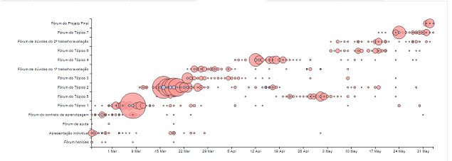 Por esse motivo, a aplicação de técnicas de visualização de informação pode ser considerada um diferencial para analisar os dados de utilização de ambientes virtuais de aprendizagem.